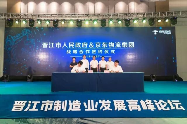6月27日,在晋江市制造业发展高峰论坛上,京东物流与晋江市人民政府正式签订战略合作协议,京东物流将发挥其技术优势和管理经验优势,进一步促进晋江市物流基础设施的完善,加速当地产业转型升级,助力晋江打造百亿电商物流产业生态聚集区。