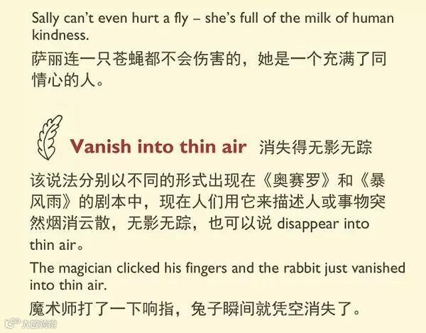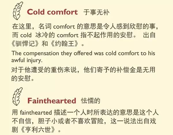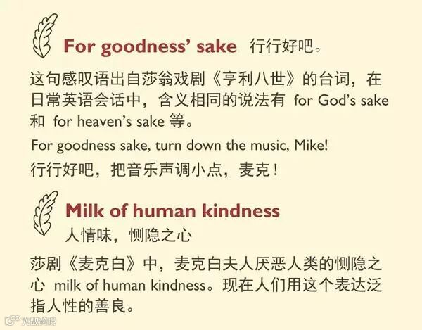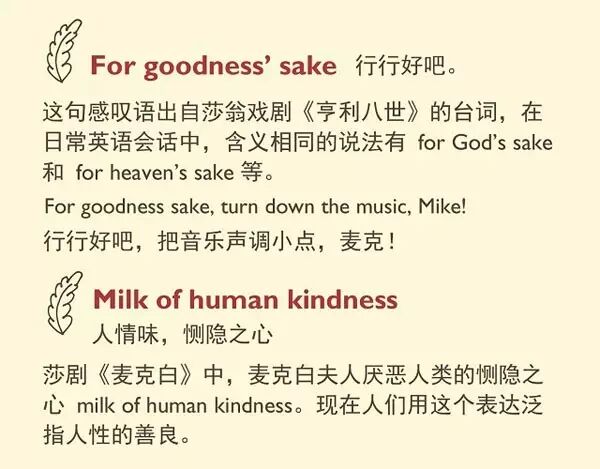 莎士比亚一生中写了许多脍炙人口的文学作品,他在撰写这些作品时也创造了不胜枚举的英语词汇和表达,其中有很多在现代英语中仍被沿用。看图,学习莎士比亚创造的十个英语表达。