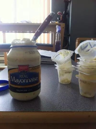 将蛋黄酱罐子洗干净,在里面装满香草布丁。第二天工作的时候把它拿出来直接开吃。这个主意实在太恶心,到了5点的时候,碎嘴的同事就会发动所有同事过来阻止你。你的愚人节任务就可轻易完成。