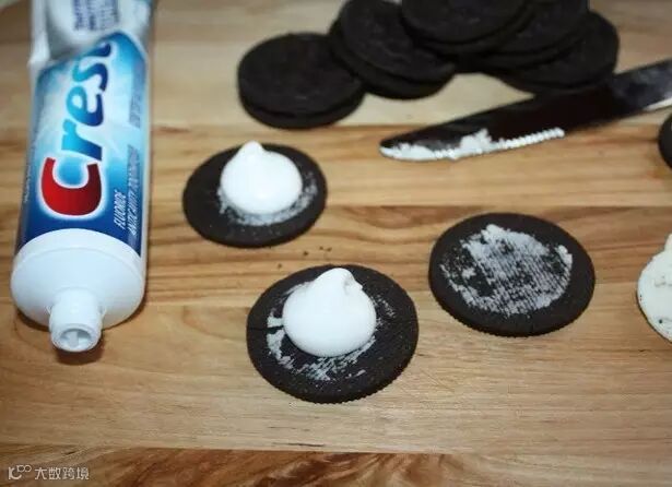 买一盒奥利奥饼干和一只白色牙膏。把奥利奥的白色夹心刮掉,然后涂上白色牙膏!随便放在哪,让被整的人能看见就好。记得准备一个垃圾桶让上当的小伙伴往里吐!