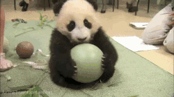 Indeed, and here comes the Ailuropodia melanoleuca waddling over, with those black eye patches of his. As if he had big, dark puppy eyes.