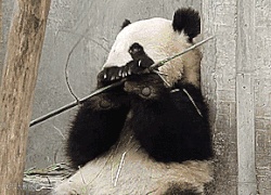 它坐在那里嚼着竹子。那毛茸茸的身体和两个大大的黑眼圈,让很多不爱凑热闹的世界人民都挪不动步。1961年,它还成为了世界自然基金会的标志,为地球上所有的动物代言。
