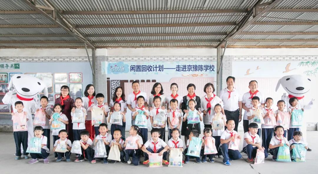 一个月前曾在社交平台上发起“童书乐捐”闲置童书回收计划的京东公益基金会荣誉理事长章泽天与京东公益爱心大使鞠萍、北京市大兴区教委工会主席李志霜、中国儿童少年基金会副秘书长许旭一起来到了京豫陈学校,和他们一起到来的,还有代表所有参与此次募捐计划的两组志愿者家庭。他们将一起为京豫陈学校的孩子们,重新搭建一个图书角,同时送来了近千本从全国各地募集而来儿童图书。