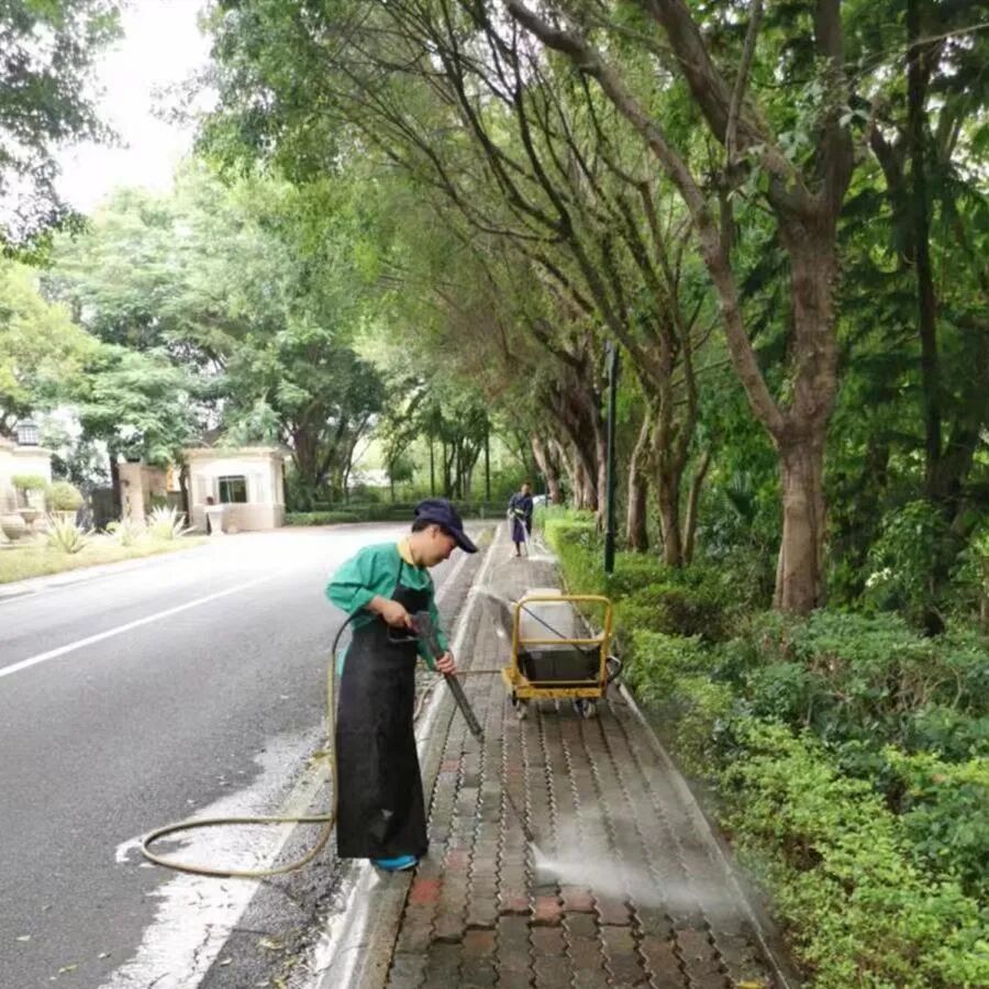 每日清扫小区公共区域、清运园区垃圾,做好日常卫生清洁。