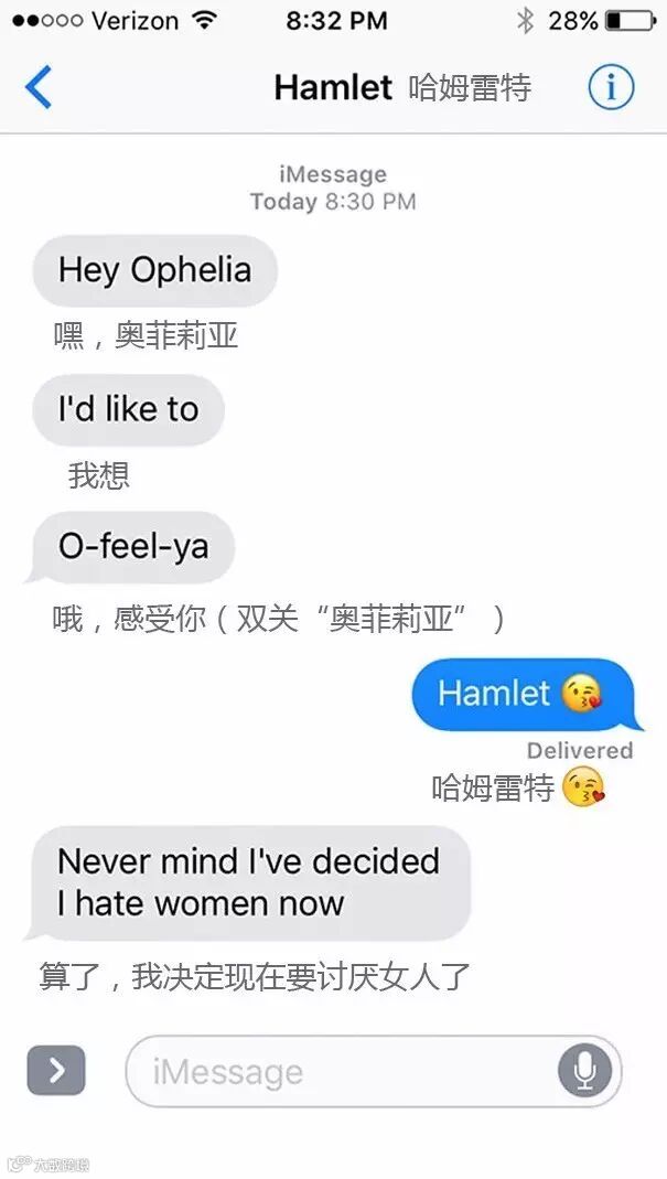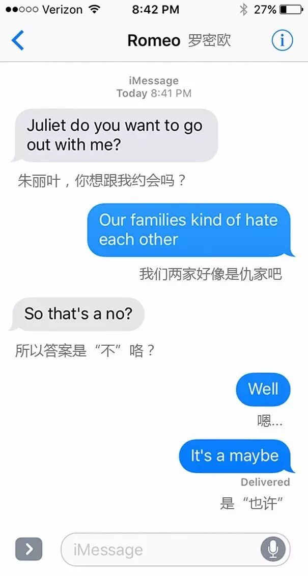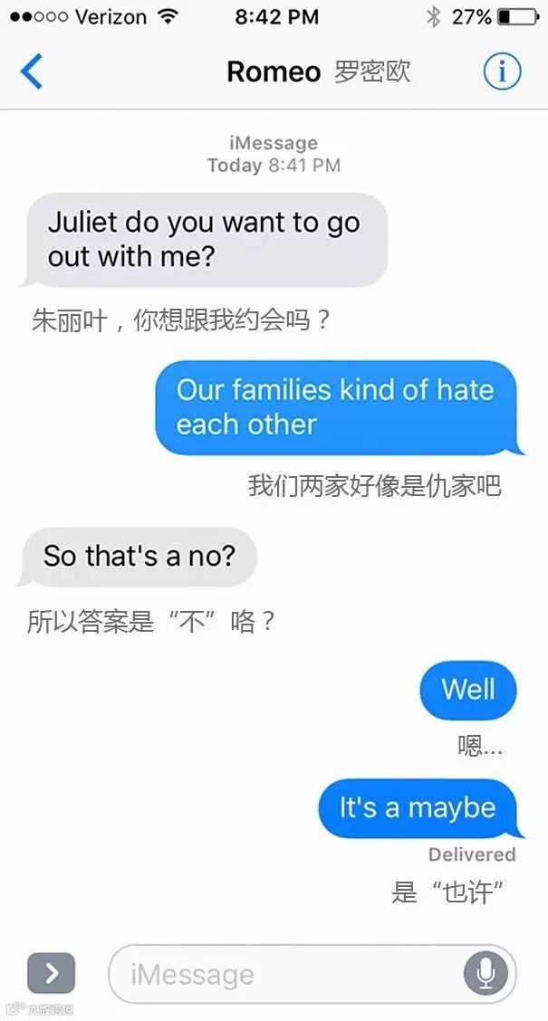 外国网站SparkLife脑洞大开,把《罗密欧与朱丽叶》《简爱》等经典著作改写成了短信体!
