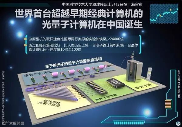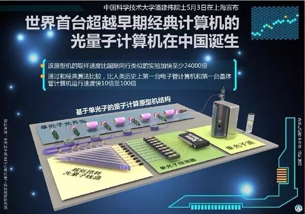 ➤中国科学技术大学的潘建伟院士(academician)3日在上海宣布,我国科研团队成功构建了世界首台超越早期经典计算机的基于单光子的光量子计算机(build the world's first quantum computing machine based on single photons that goes beyond the early classical computers),为最终实现(ultimate realization)超越经典计算能力的量子计算奠定了坚实基础(lay a solid foundation)。