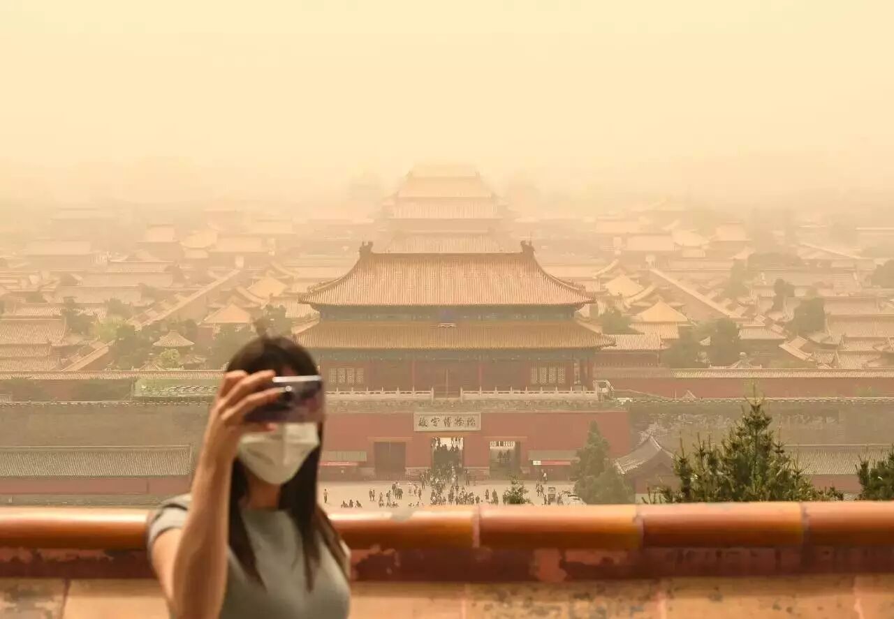 4日,今年最强的沙尘暴将天空变成了灰蒙蒙的一片,颗粒物数值也随之飙升。
