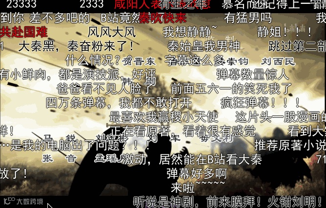 “赳赳老秦,共赴国难”;“壮哉我大秦朝” 这样的热血弹幕充斥着屏幕。是关于家国的赤诚热情,更宣扬着集体主义的情怀。