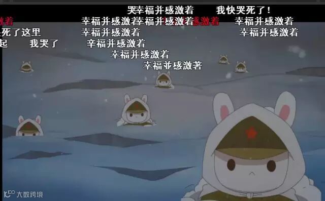 “看一集哭一集”,有B站网友在弹幕里这样评价。每集结尾附以对应的历史影像,第一季里还能看到“幸福并感激着”这种带有强烈情绪暗示的黑底白字作为终结画面,极大调动了观众的爱国热情。