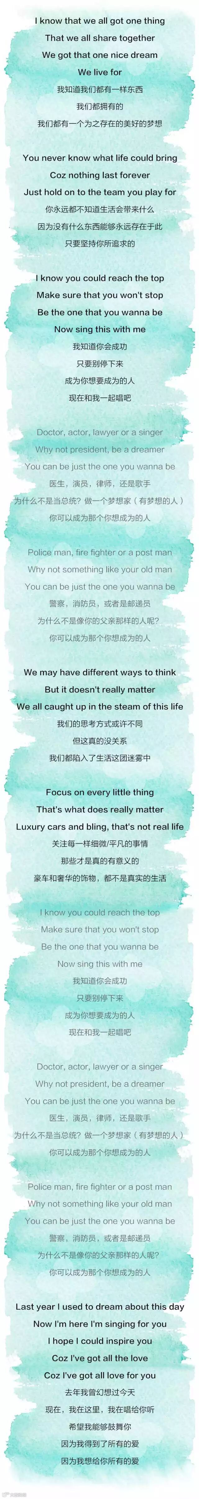 你是否能够体会到歌词中所表达的这份心情,和想要传递的那份鼓励呢?如果你也受到鼓舞,就把这首歌分享给更多的人吧~ 让我们为了心中的那个目标,那个梦想一起努力。