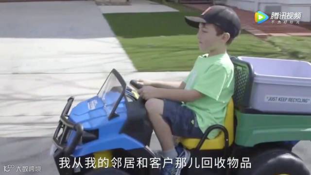 瑞恩有时也会自己“驾车”去挨家挨户收集瓶子,看看这“开车”的样子,是不是还挺像摸像样?