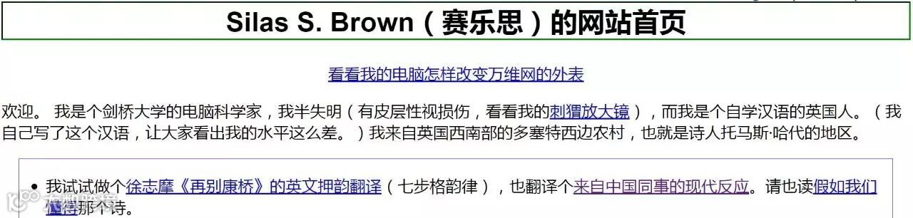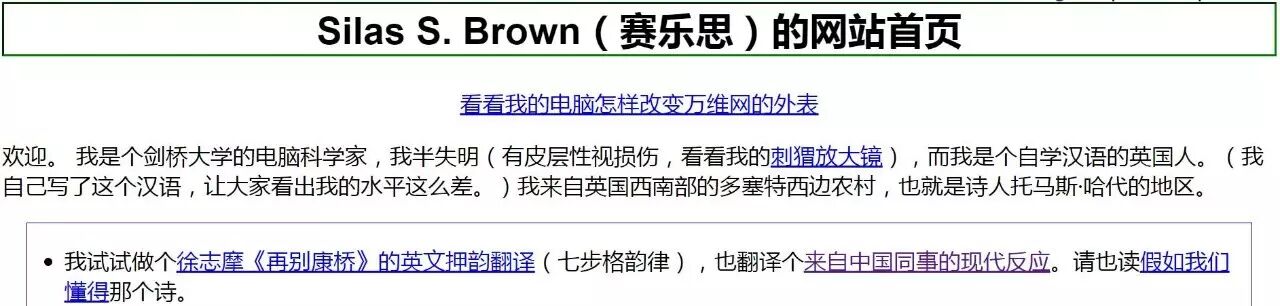 这位来自英国的剑桥大学计算机科学家Silas S. Brown自学了汉语,还翻译了徐志摩的《再别康桥》。