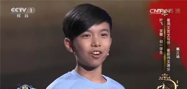 13岁的初一学生叶飞,擅长用文言文写作,小小年纪就有不俗的诗词积累。