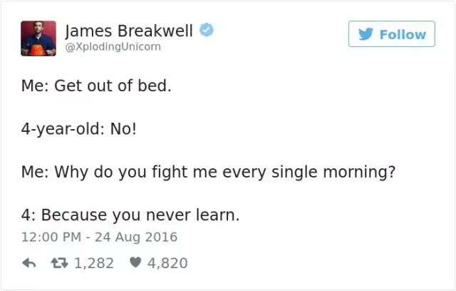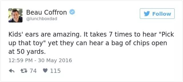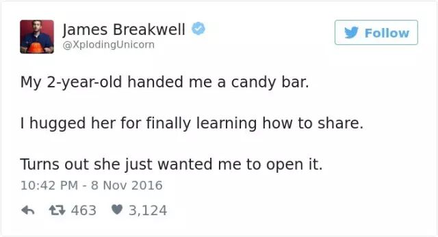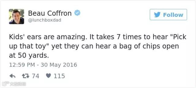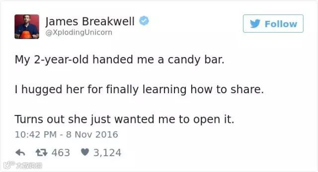 Bored Panda网站盘点了Twitter2016最佳父母吐槽推文,父母带娃可都是斗智斗勇的过程,长这么大,父母不容易,孩子也不容易啊……