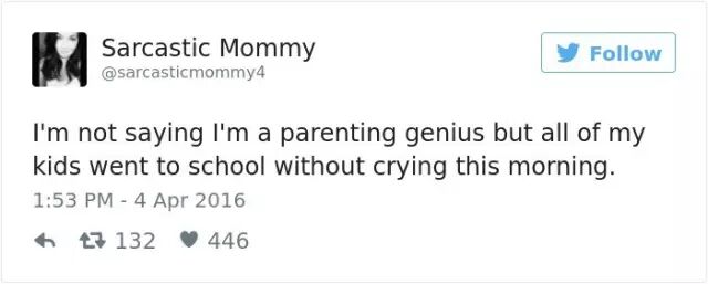 我不是说自己是育儿天才,但今早我的孩儿们没哭没闹,乖乖地去上学了。