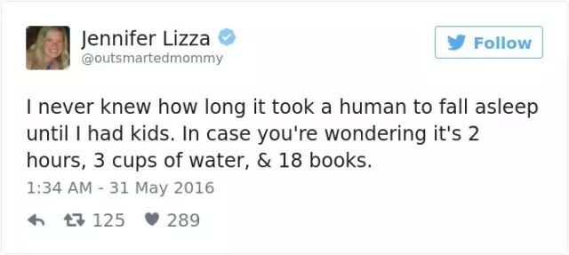 之前一直不知道人要多久才能入睡,直到我养了孩儿。告诉你吧,免得你好奇:一共要两小时,三杯水和十八本书这么久。