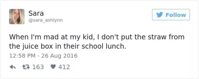 我生我家小孩气的时候,就不给他们的午餐盒里放喝果汁用的吸管。