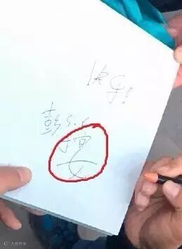 ▲ 12月1日,邓超工作室发出一组照片,一位阿姨在片场间隙进来错将邓超认成彭于晏,而邓超将错就错,替大妈签上了彭于晏的名字。只不过“晏”字写错了,不知道是故意写错还是真心写错?学霸邓超又get了人生新技能!神奇的网友戏称“烹鱼宴”。