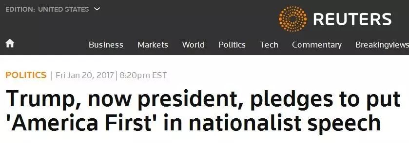 他在这篇令人寒心的就职演讲中誓言,美国至上,其他国家都滚蛋吧……