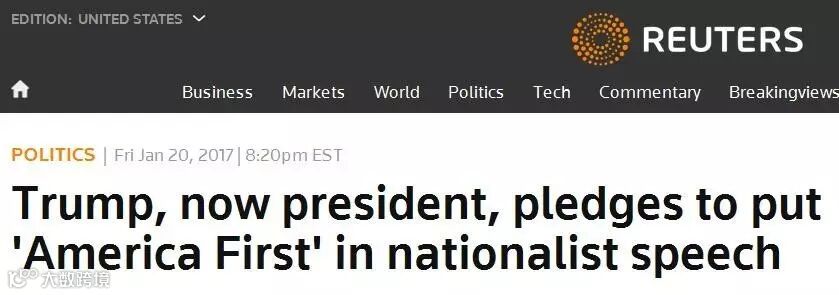 走马上任的特朗普在民族主义演讲中宣誓美国利益优先
