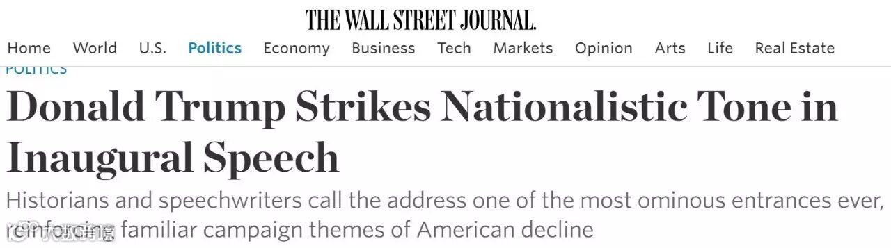 特朗普的就职演讲把媒体吓得不轻,随便刷开一篇新闻,都能感受到美国媒体深深的担忧……