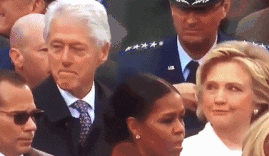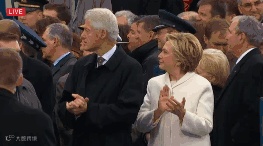 当特朗普一家风光无限地走进场时,台下希拉里夫妇的反应是这样的……