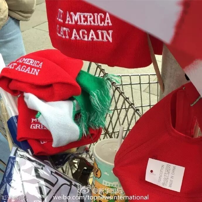 口号虽然响亮,但也有去华盛顿参加就职典礼的网友指出,自己在大街上买的纪念帽,翻过来一看还是“Made in China”的呢……