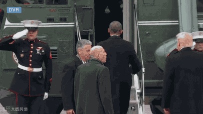 首先特朗普夫妇把奥巴马一家送走。奥巴马正式卸任,向群众最后一次挥手告别。