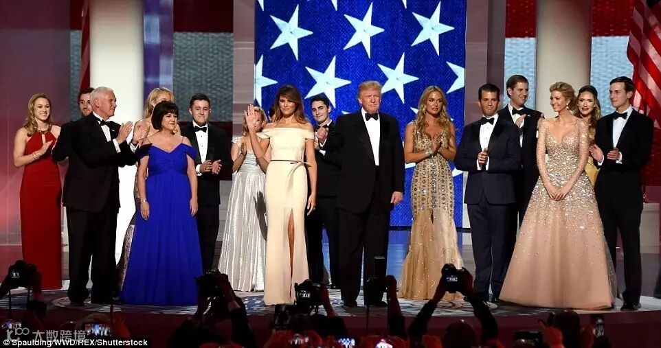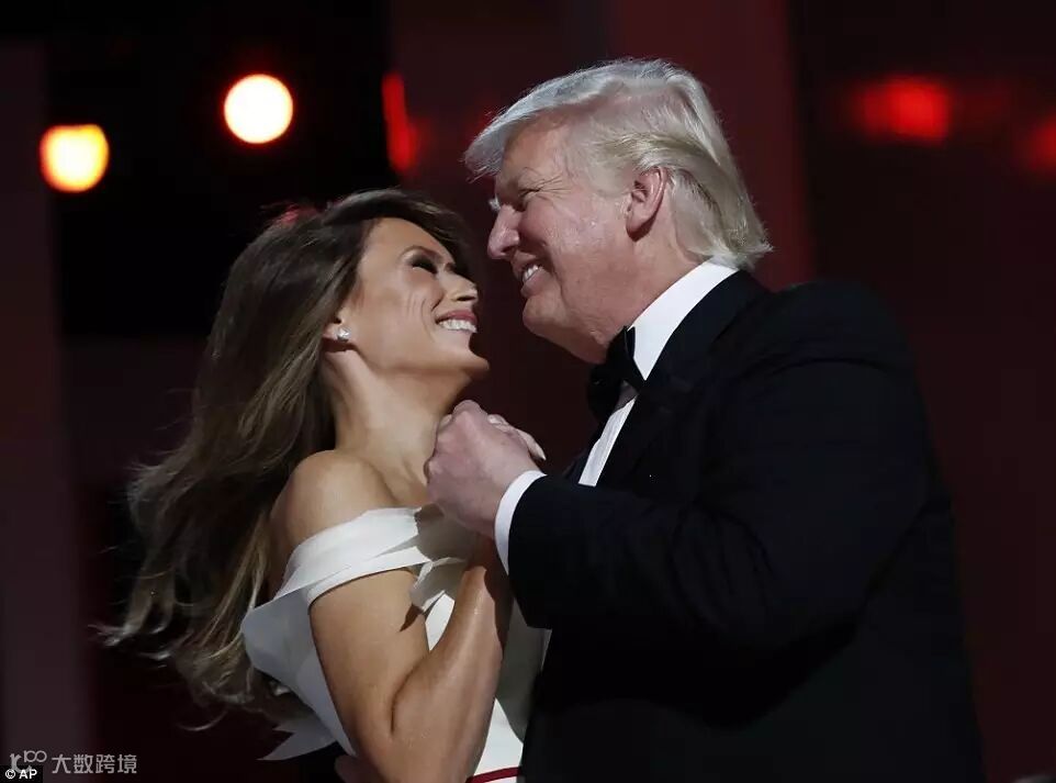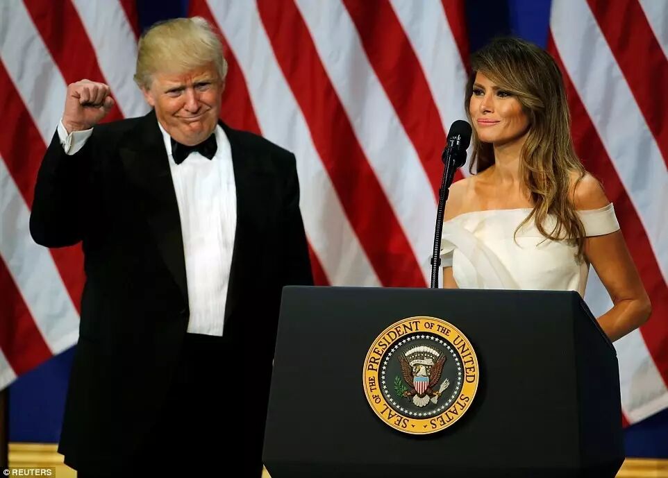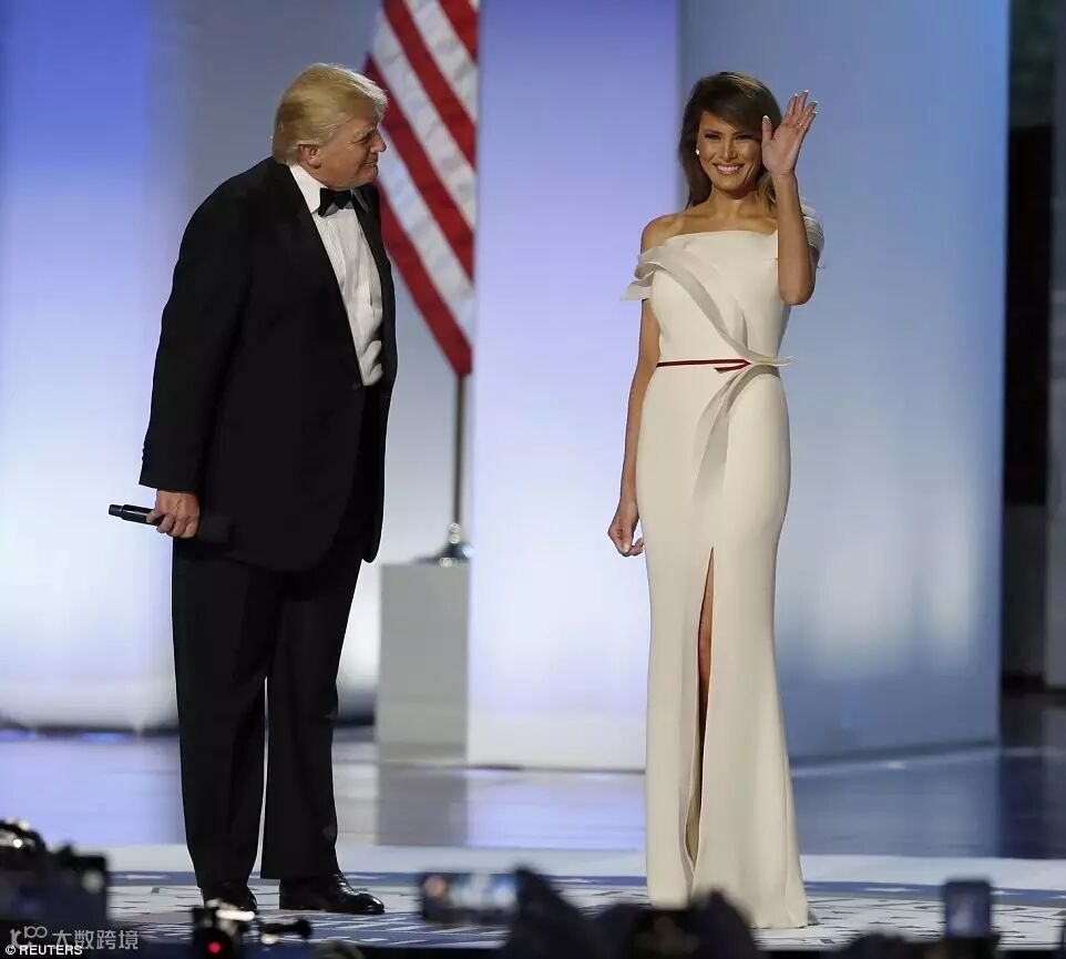 舞会上,梅兰妮亚穿的是法国品牌Hervé Pierre。特朗普:“我妻美美哒”。