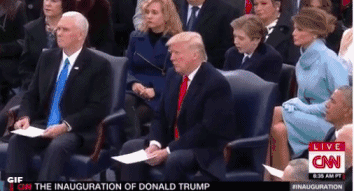 中午时分,特朗普念宣誓词正式宣誓就职了。
