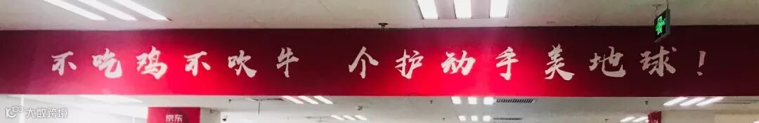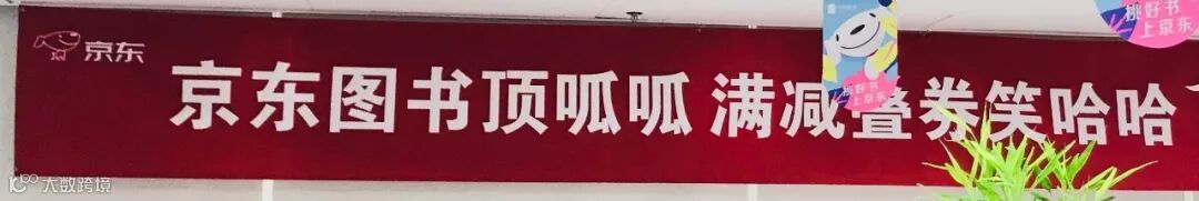 看了下面的条幅,小编脑海里回荡着一句话:“好看的皮囊我自己有,有趣的灵魂在京东!”