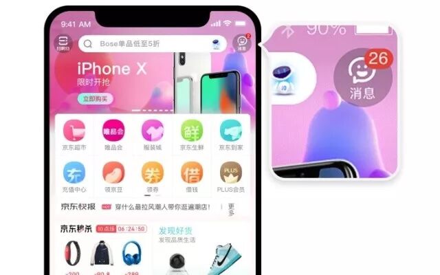 7.0版本的用心之处还在于,它更注重用户情感化体验。这一版本把原来首页右上角的消息中心的icon及红点用“笑脸图标”代替,潜移默化地减缓了红点带给用户的焦虑感。除此,新版中还新增了京东JOY形象的表情包,提升了用户与客服人员沟通时的趣味性,让京东品牌更具亲和力。