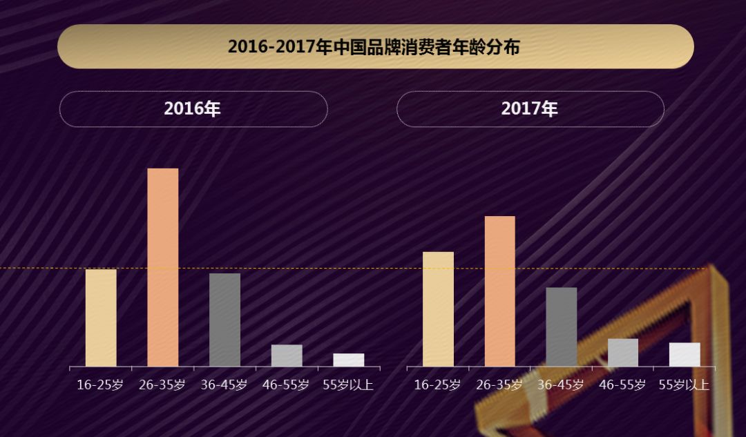 与全站消费者相比,中国品牌消费者中16-25岁青年群体占比要高出全站4%,同时2017年16-25岁青年群体的消费占比2016年要高出6%。青年代表着消费市场的未来,中国品牌正越来越受到年轻用户的青睐,可持续成长空间广阔。另外,中老年消费者群体的增长也较快,说明中老年消费者越来越接受电商消费方式,中国品牌各年龄段消费者分布也更加均衡。