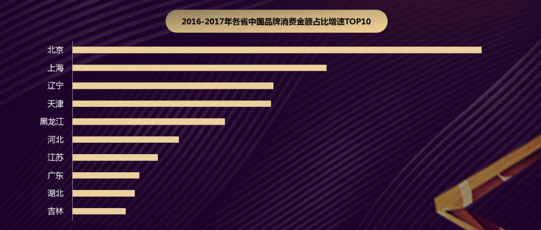 在很多人心目中,“农村包围城市”是中国品牌的鲜明战略,但从地域消费来看,与14-16年相比,一线-三线城市中国品牌消费增速实现了对四线-六线城市的反超。这一结果表明中国品牌商品品质得到了全面提升和认可,已经越来越受到消费能力相对较高的人群的欢迎,中国品牌在全国各线城市的消费渐趋均衡。西南、西北和华中各省(直辖市、自治区)群体成为消费主力,贵州、云南、江西、甘肃、宁夏、广西、湖南、山西、河南、青海等省市成为2017年中国品牌销量占比TOP10省市。
