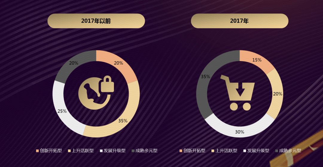 报告根据销售规模、增长趋势、市场反应、消费者偏好、技术含量等大数据指标,将当前中国品牌主要分为四大类型:上升活跃型、发展升级型、创新开拓型和成熟多元型。