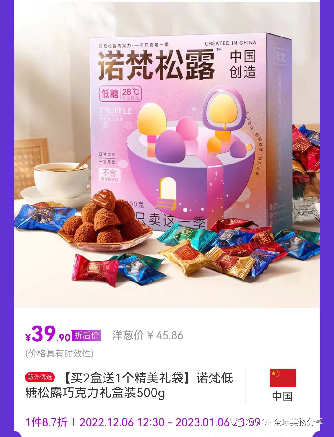 每年备受喜爱的诺梵松露巧克力🍫全面升级,折扣今天开始~