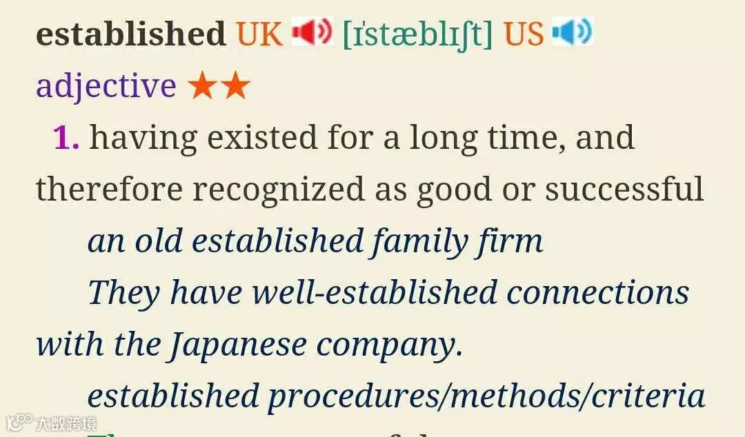 不少人会把 established companies 理解为“已成立的公司”,但实际上它的含义应该是“知名公司”: