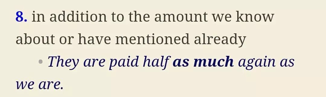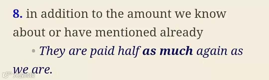 again 在这里的含义是“增多,增加”,A is half as long again as B 含义是“A比B长一半”,under half as long again as 即“不到……的一倍半”