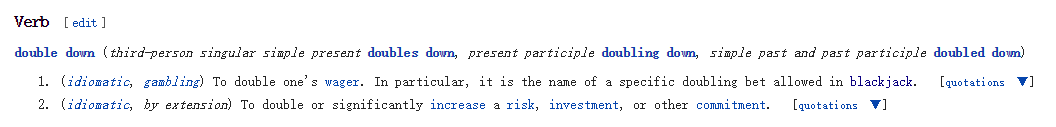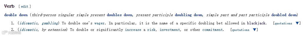 其中 double down 这个词组很多传统词典没有收录,但我们可以在维基百科上找到解释: