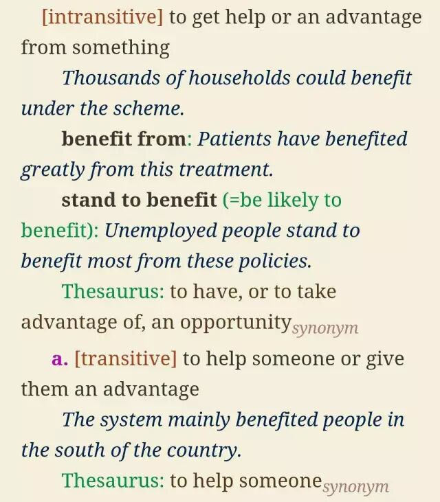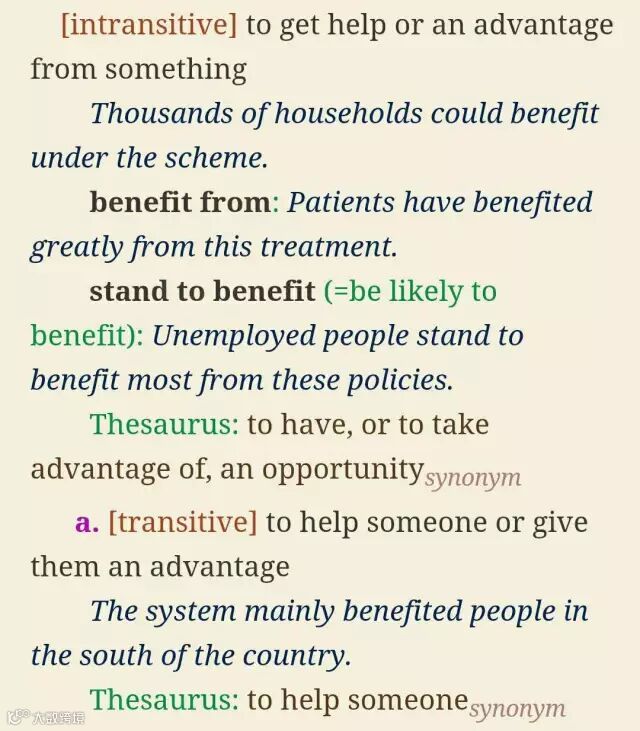 要用好类似 benefit 这样的词,需要我们多查词典。