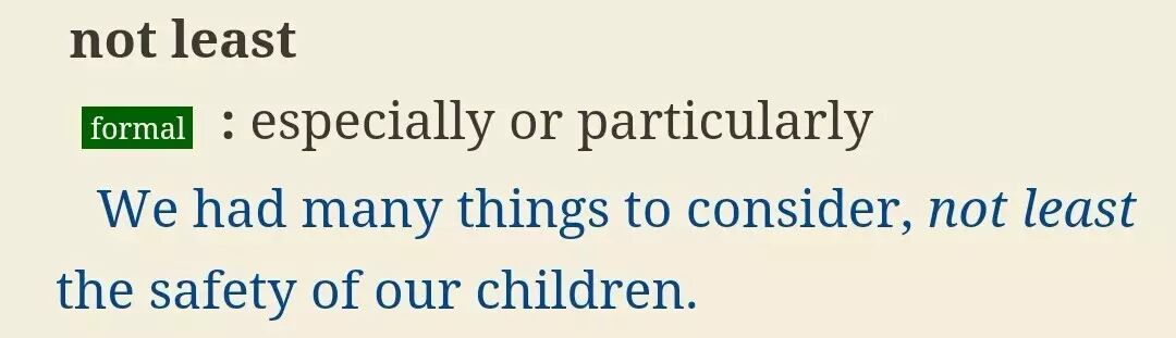 not least 不能根据字面意思理解为“不仅仅”,它的真正含义是“尤其是,特别是”