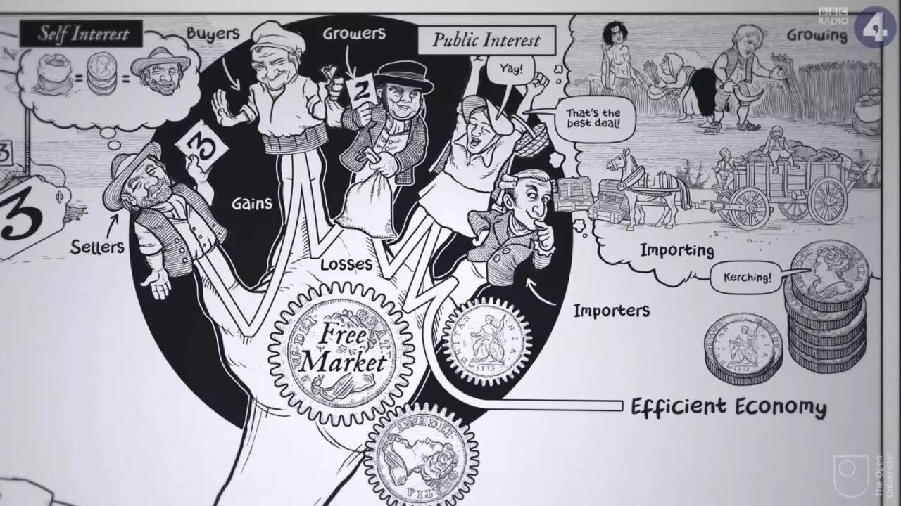 书中还讲到产品成本与价格的关系,也就是现代微观经济学的理论基础;劳动者和资本家的分化,也就是马克思在《资本论》中深入探讨的重点;同时还在讨论当时各国经济政策后,提出了那个著名的市场机制是一双“看不见的手”的概念——即每个人在经济生活中好像都被一双看不见的手牵着追求个人利益,但其最终结果反而会促进公共的福祉。