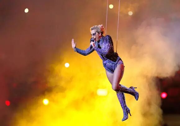 今年,Lady Gaga成为史上第五位在超级碗中场秀上独挑大梁的女艺人,她一口气演绎了《Poker Face》、《Born This Way》、《Telephone》、《Bad Romance》等7首经典曲目。Ga姐的13分钟的劲歌热舞将现场气氛推向高潮。