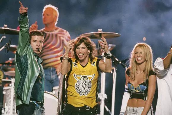 2001年的超级碗中场秀上,空中铁匠、超级男孩和小甜甜布兰妮联手登台。这场摇滚、重金属与流行相互碰撞的表演堪称音乐界的狂欢。