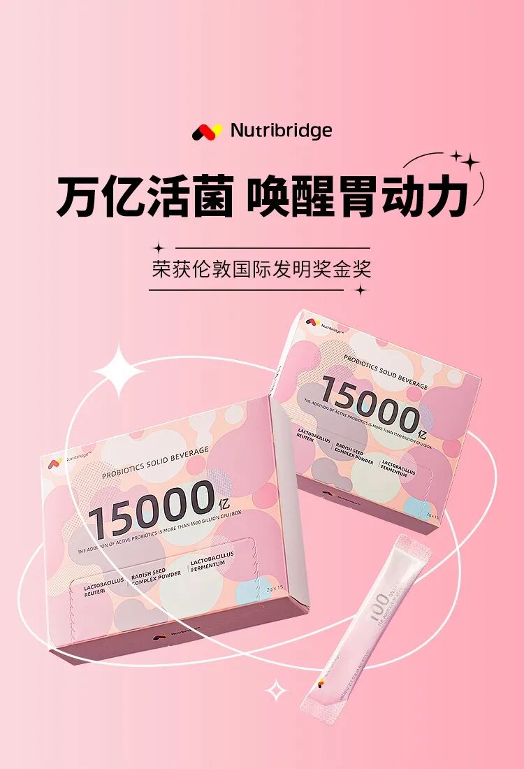 诞生于德国的「Nutribridge」切入健康管理的消费升级赛道,专注肠胃养护的细分领域,整合国际研发生产资源,与跨学科的人才团队合作,共研中西结合的配方体系,复配出科学护胃的Trillion ProbioTM兆级益生菌。「Nutribridge」推出草莓口味的益生菌产品,适合日常护胃、症状期辅助、愈后巩固的使用人群。