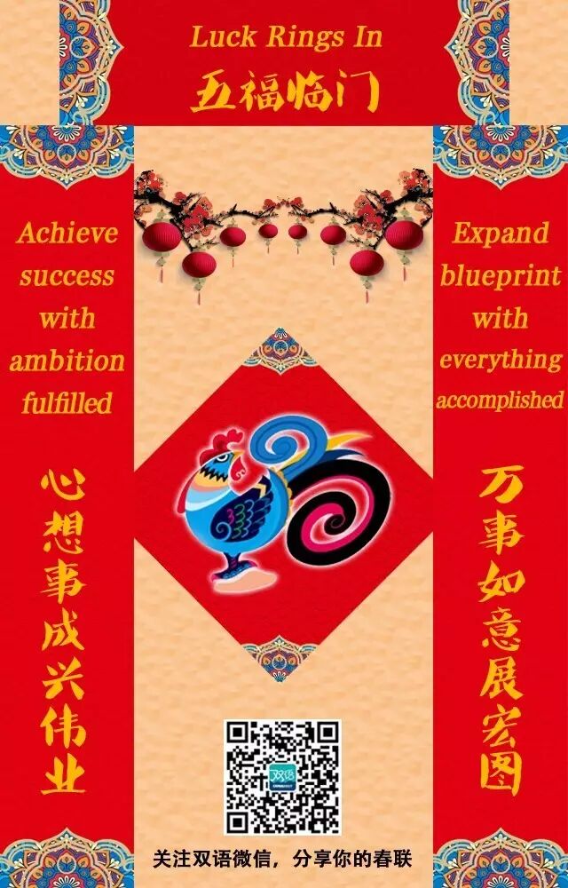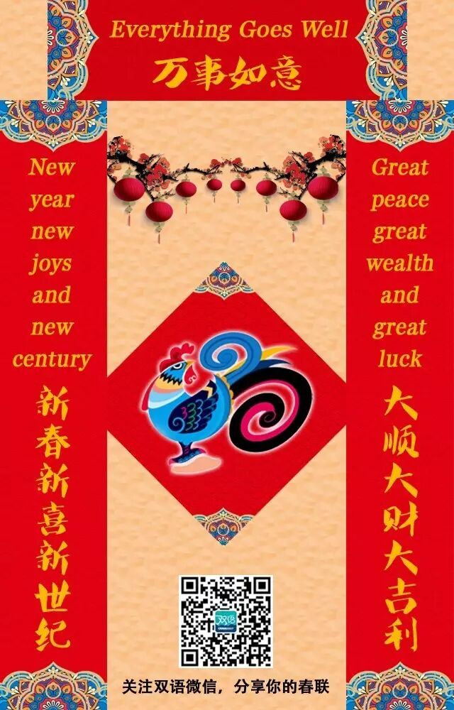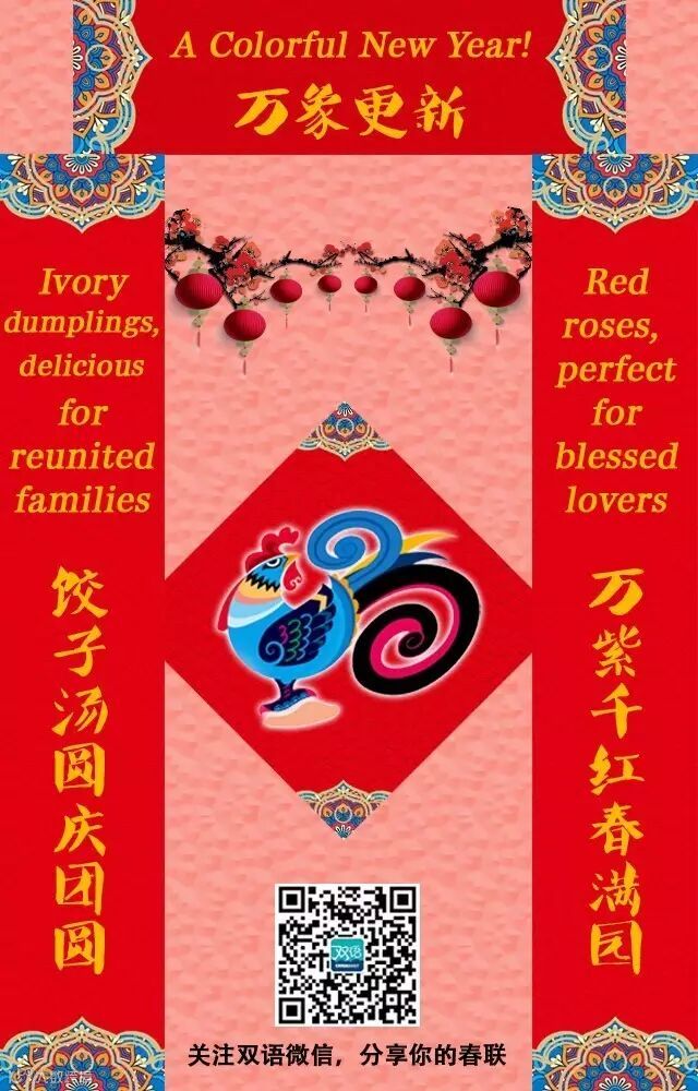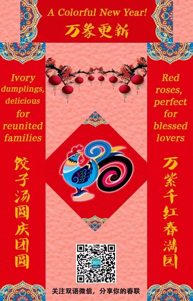 除了年货大礼以外,双语君(微信ID:chinadaily_mobile)还精心为大家准备了八幅俏皮可爱的双语春联。