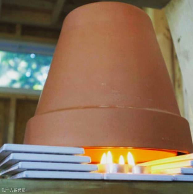 用小圆蜡烛和赤陶罐自己动手制作一个取暖器。