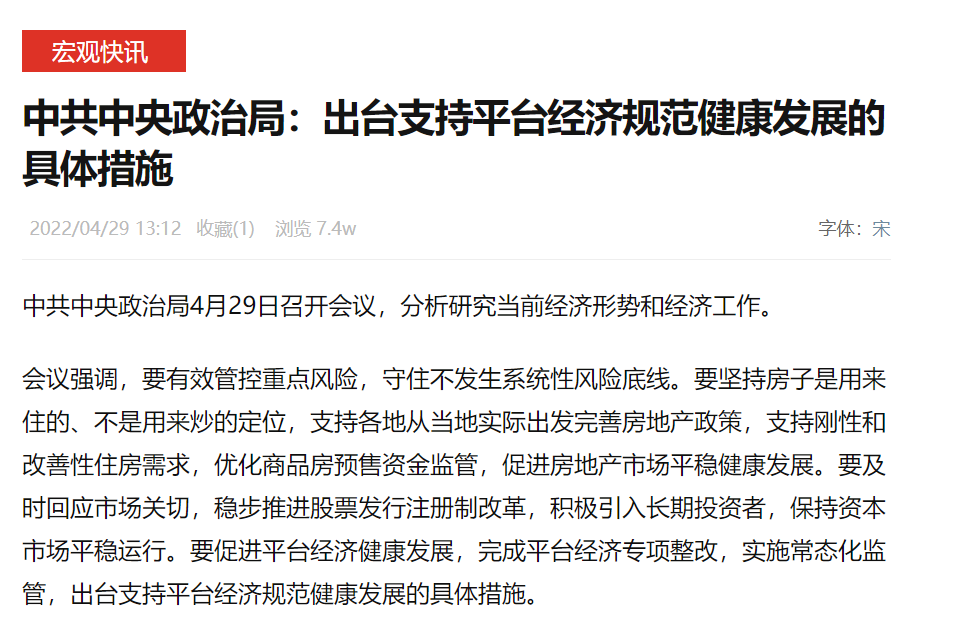 今年上半年召开的中共中央政治局会议明确提出,要“促进平台经济健康发展”,该信号的释放立即引起市场的积极反应。