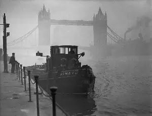 那些偶然从桥上走过的人们,目光穿过栏杆,窥探着浓雾朦胧的天空;他们被迷雾包围着,仿佛乘着气球,漂在湿漉漉的云雾中。