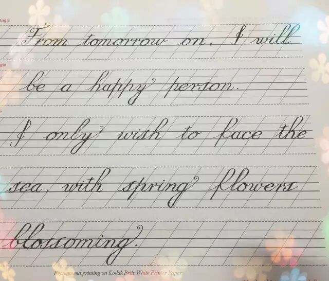 如果你想练习英文书法,推荐使用纤维紧致的纸张,并且使用钢笔。这样墨水在纸张上,会以最佳的姿态舒展,无晕染。